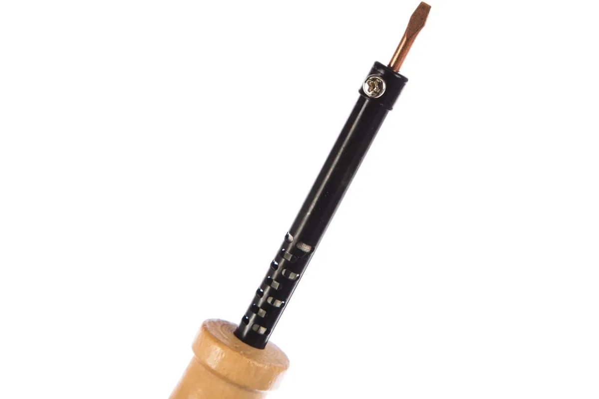 Электропаяльник ЗУБР МАСТЕР 55405-40_z01 дает возможность работать с миниатюрными деталями на платах, паять медные проводники. Мощности в 40 Вт достаточно для того, чтобы нагреть жало паяльника до требуемой температуры за небольшое количество времени. Жало ЗУБР МАСТЕР 55405-40_z01 с наконечником в форме клина имеет медный сердечник, делающий рабочую поверхность инструмента еще более долговечной. Удобная деревянная рукоятка эргономичной формы позволяет комфортно работать с небольшими элементами.