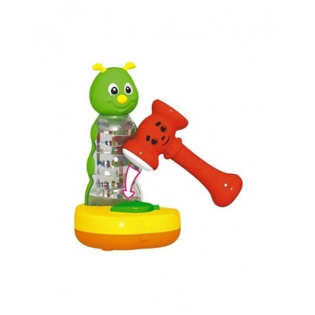 Стучалка «Гусеничка» - яркая забава, на радость маме и ребенку. Малыши обожают чем-то по чему-нибудь стучать, и «Гусеничка» будет как нельзя кстати. Когда стучишь кувалдочкой по листику (кнопке), раздается смешной звук, внутри игрушки прыгают разноцветные шарики. Нос и рожки гусенички мягкие, гибкие. Это дополнительно увлечет малыша. Маме остается только получать удовольствие от совместной игры с ребенком или заняться другими делами, пока малыш будет занят важным для себя делом – стучать. По словам психологов, так ребенок освобождает накопившуюся энергию, и она направляется в позитивное русло. Малыш успокаивается. Играя, он учится различать цвета, понимать и наблюдать причинноследственные связи: ударил кувалдочкой – посыпались яркие шарики. Это стимулирует его совершать новые действия.