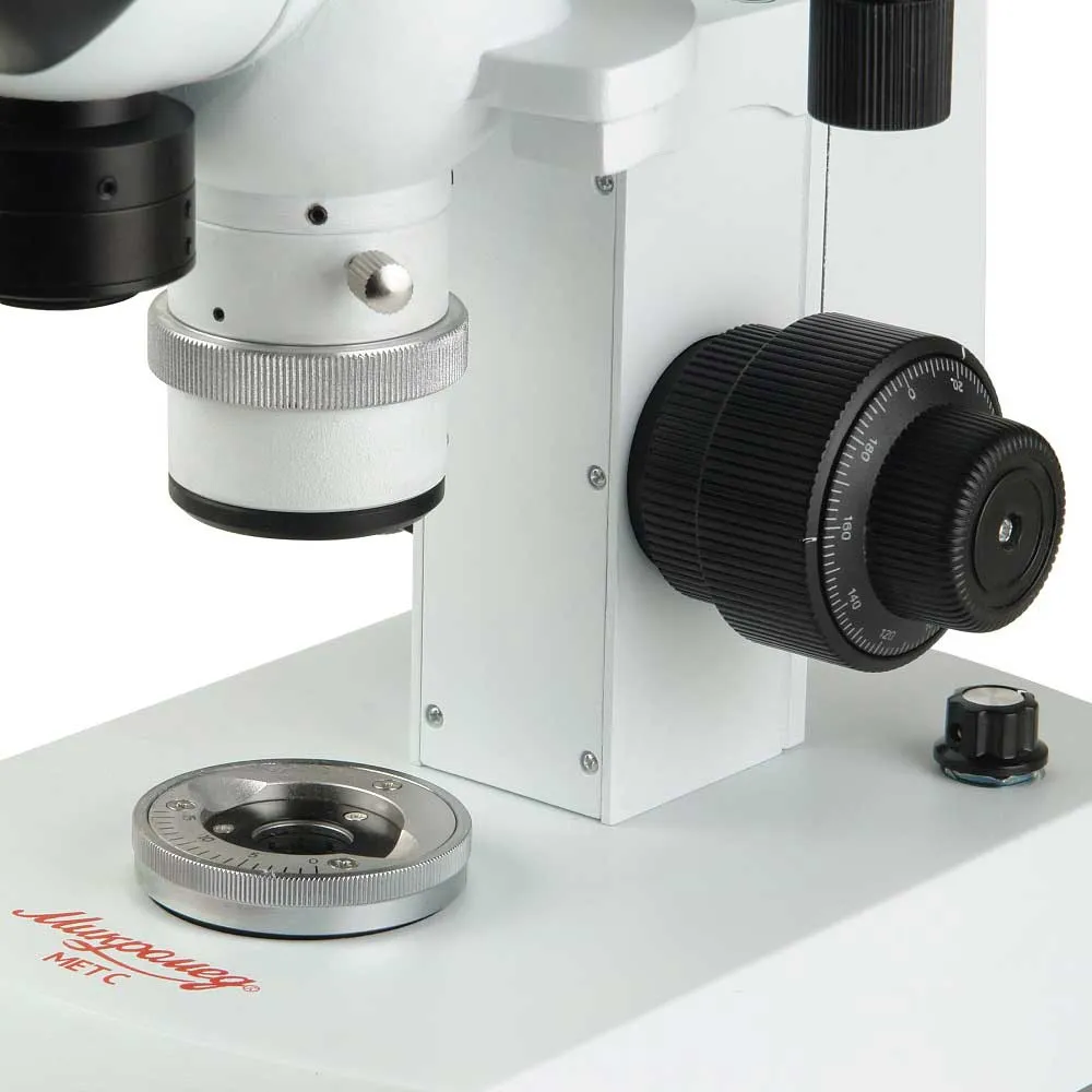 Микроскоп Микромед МЕТ С предназначен для визуального наблюдения микроструктуры металлов, сплавов и других непрозрачных объектов в отраженном свете при прямом освещении в светлом поле. Микроскоп применяется для контроля качества металлов и сплавов и исследования их структуры. Инвертированное строение позволяет исследовать габаритные объекты. Двукоординатный предметный столик обеспечивает плавное перемещение препарата по двум осям. Микроскоп Микромед МЕТ С рекомендован для учебных целей в высших учебных заведениях. Микроскоп может применяться в металлографических лабораториях предприятий металлургической, микроэлектронной, машиностроительной промышленности. Микроскоп позволяет выводить изображение в режиме реального времени на экран ПК с помощью видеоокуляра (в комплект не входит). Видеоокуляр устанавливается на третий вертикальный выход визуальной насадки