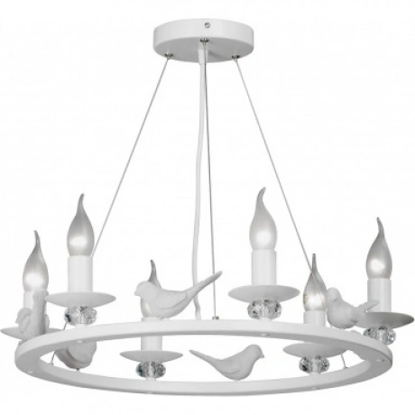 Подвесная люстра со свечами и птичками будет отлично смотреться в гостиной, спальне в стиле модерн. Люстра оснащен цоколем 6xE14. Питание от сети 220V, общая максимальная мощность 240W позволяет осветить площадь до 12 кв. м.