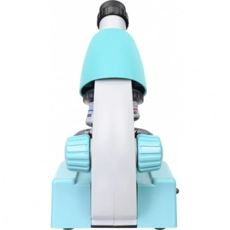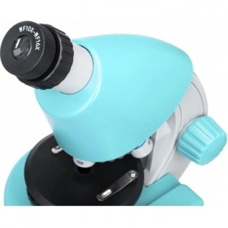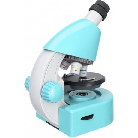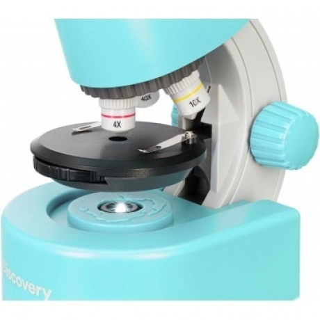 Микроскоп Discovery Micro станет прекрасным проводником в мир микроскопии. Этот простой в использовании оптический прибор позволяет узнать, как выглядят клетки в тканях, на что похожи крошечные организмы, живущие в воде, как устроены конечности и крылья насекомых и многое другое. Благодаря небольшим размерам и весу микроскоп можно брать с собой на природу или на дачу, чтобы разнообразить наблюдения. Оптическая система состоит из трех объективов кратностью 4х, 10х и 40х и двухпозиционного окуляра, который в одном положении дает увеличение 10х, а в другом – 16х, т. е. представляет собой два окуляра. Общий диапазон приближения составляет от 40 до 640 крат, что позволяет наблюдать многие объекты микромира. Но так как микроскоп относится к классу начальных, то увидеть бактерии или клетки крови с его помощью не получится. А вот в сочетании с готовыми микропрепаратами из наборов он даст прекрасный результат. Монокулярная насадка имеет наклон в 45°, поэтому длительные наблюдения микромира не вызывают перенапряжения мышц. Настройка резкости производится вручную, для этого используются ручки грубой фокусировки.
