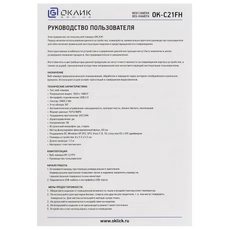 Отзывы о товаре Веб-камера Oklick OK-C21FH черный