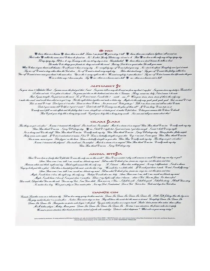 Лицензионное издание, выпущенное на виниле. Содержание альбома: I No, Alphabet St., Glam Slam, Anna Stesia, Dance On, Lovesexy, When 2 R In Love, I Wish U Heaven, Positivity