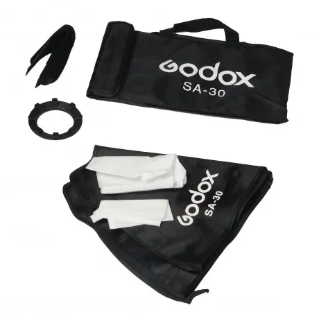 Комплект студийного оборудования Godox S30-D – это 3 легких фокусируемых студийных осветителя S30, устанавливаемых на осветительные стойки Godox 213B, и целый набор светомодифицирующих насадок. Комплект предназначен для фотографов и видеографов, профессионально занимающихся предметной, свадебной, рекламной съемкой и использующих творческие приемы в освещении. Для получения точечного пятна или регулировки его формы световой поток может быть дополнительно ограничен металлическими шторки Godox SA-08 (в комплект входит 3 шт). Благодаря четырем шторкам, две из которых оснащены дополнительными лепестками, вы сможете произвольно контролировать распределение светового потока на предмете съемки или фоне. Два комплектных софтбокса SA-30 с сотами размером 30х30 см помогут сформировать мягкое и равномерное световое пятно. Байонет осветителя S30 позволяет вращать софтбокс, точно ориентируя световой пучок.