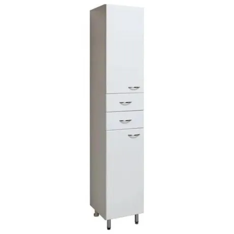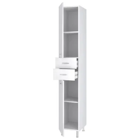 Пенал RUNO 30 левый 00000000123 функциональное решение для недорогого и современного оснащения ванной комнаты. Шкаф выполнен в белом цвете, идеально впишется в любой интерьер ванной комнаты. Изделие имеет две распашные дверцы, в нижнем и верхнем отделениях по одной встроенной полке и два выдвижных ящика на шариковых направляющих. В комплекте идут петли со встроенным доводчиком, 4 ручки, 2 хромированные и 2 пластиковые ножки. Мебель для ванной RUNO красота и практичность в мелочах!