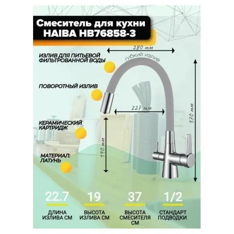 Отзывы о товаре Смеситель для кухни Haiba (HB76858-3)