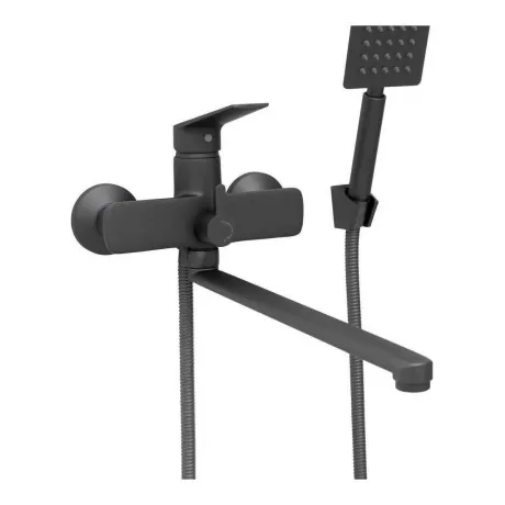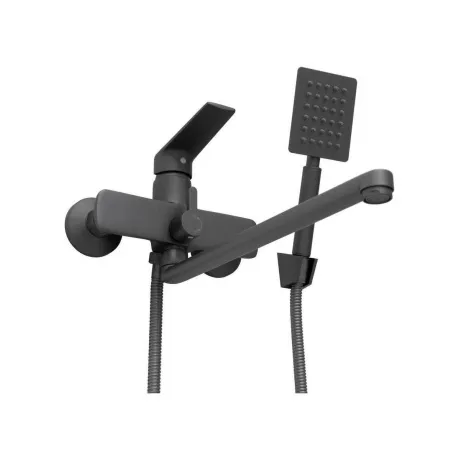 смеситель, аэратор, керамический картридж 35 мм, переключатель с керамическими пластинами, шланг 1.5 м, настенное поворотное крепление, 1-функциональная лейка, металлическая рукоятка, упаковка