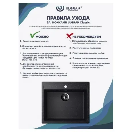 Описание товара Мойка Ulgran Classic черный (U-104-308)
