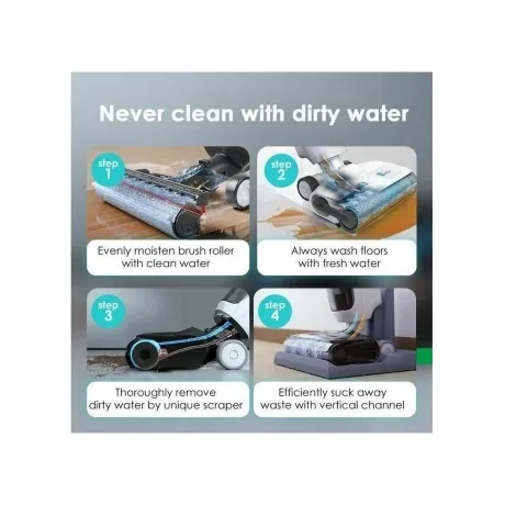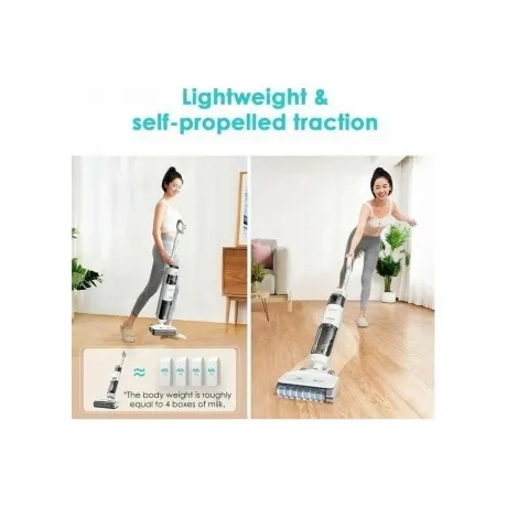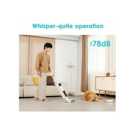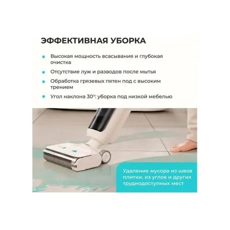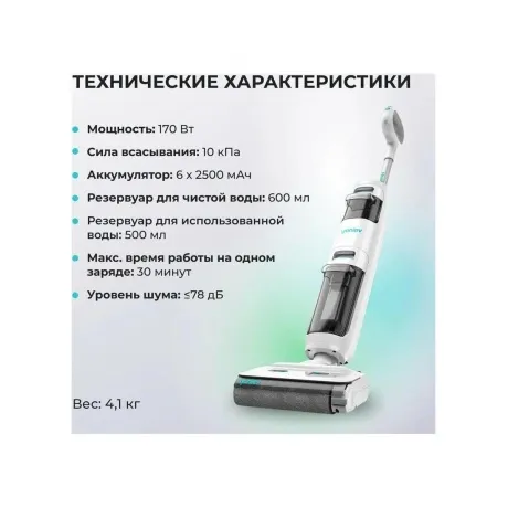 Моющий пылесос вертикальный с подсветкой для дома Wet & Dry с возможностью одновременной сухой и влажной уборки поможет поддерживать чистоту в доме и быстро убирать как сухой мусор, пролитые жидкости, волосы и шерсть животных. Девайс разработан специально для чистки сухих и влажных загрязнений. Конструкция щетки плотно прилегает к стене с одной стороны и позволяет убираться вдоль стены, плинтуса и в углах. Бесщеточный мотор пылесоса для дома обеспечивает высокую производительность устройства и работает с низким уровнем шума. Уровень шума составляет менее 78 дБ. Электровеник беспроводной оснащен системой шумоподавления. Уборка не побеспокоит детей, домашних животных, пожилых людей и других членов семьи. Мощность всасывания - 10000 Па. Ручной пылесос беспроводной оснащен тремя режимами работы: автоматическим, режимом максимального всасывания и обычным режимом. Беспроводной пылесос эффективно справляется с пылью, мелким мусором, частицами грязи в швах плитки, между половицами. Пылесос мощный подходит для уборки любого напольного покрытия. Угол наклона 30° позволяет эффективно очищать пространство под мебелью от пыли. Во время влажной уборки используется только чистая вода благодаря системе двух герметичных контейнеров. Дополнительные колесики пылесоса для ковров используют энергию двигателя для гладкого скольжения по поверхности и помогают без усилий перемещать пылесос, создавая иллюзию, что пылесос двигается сам.