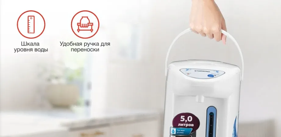 Отзывы о товаре Термопот Starwind STP2851 5л. 750Вт белый/голубой
