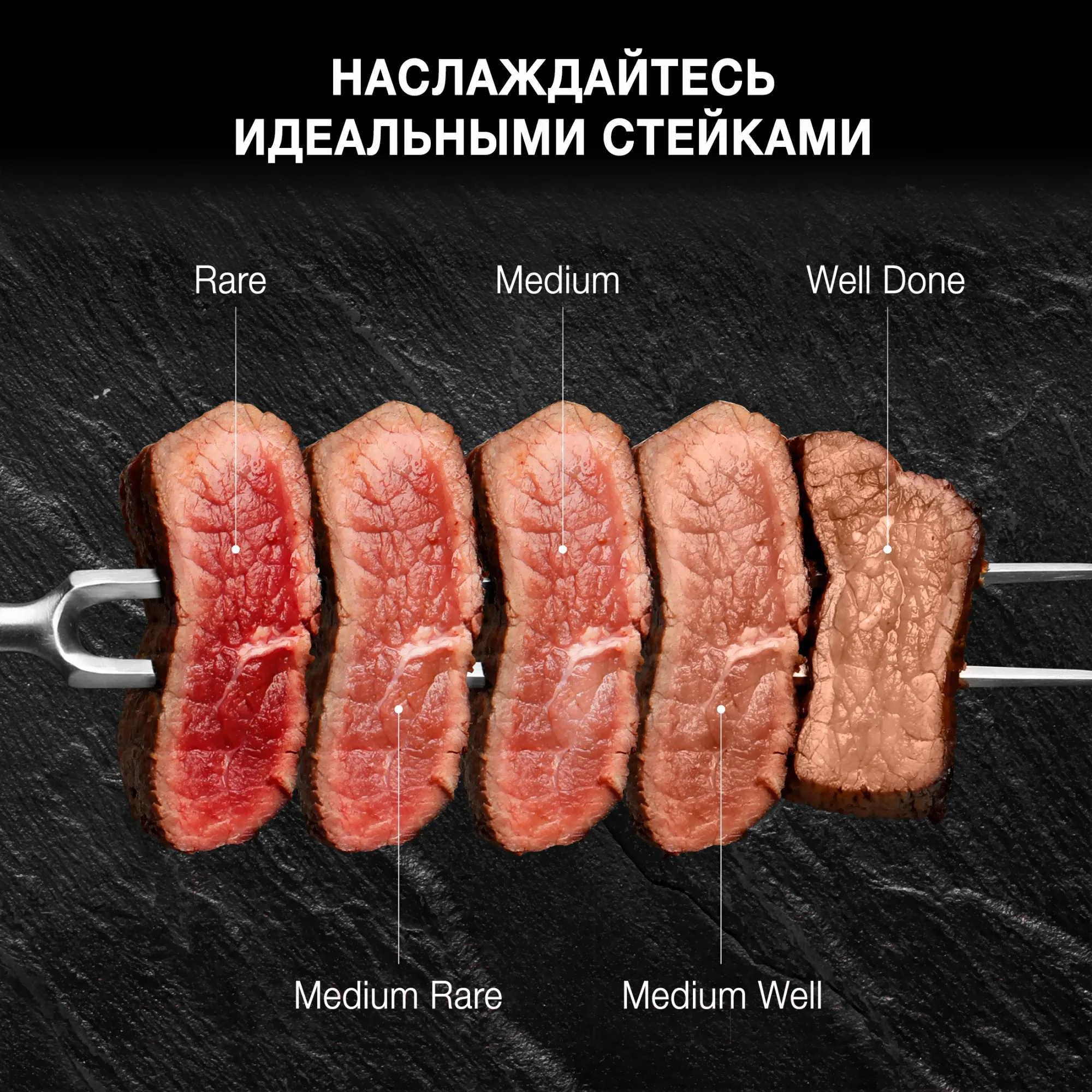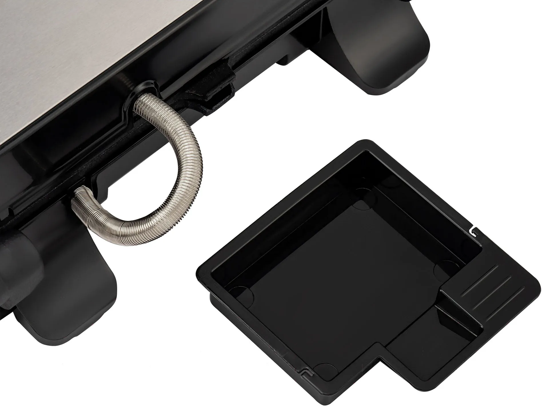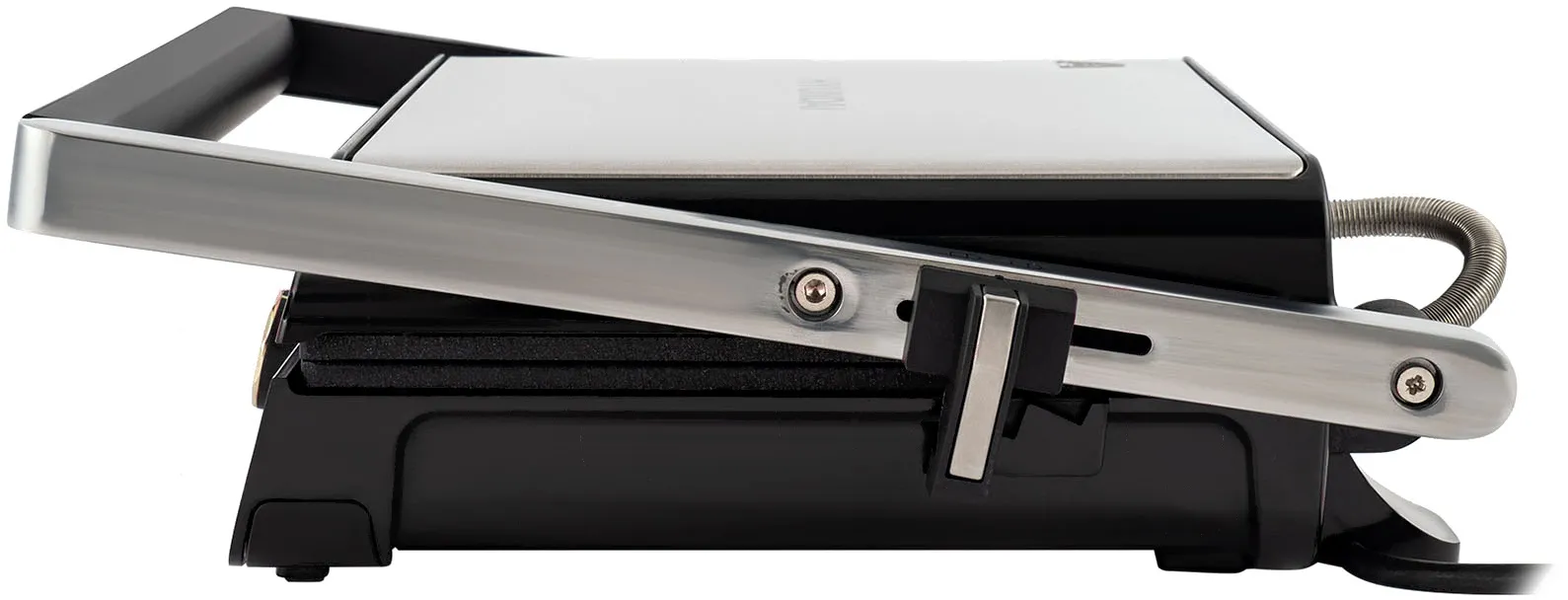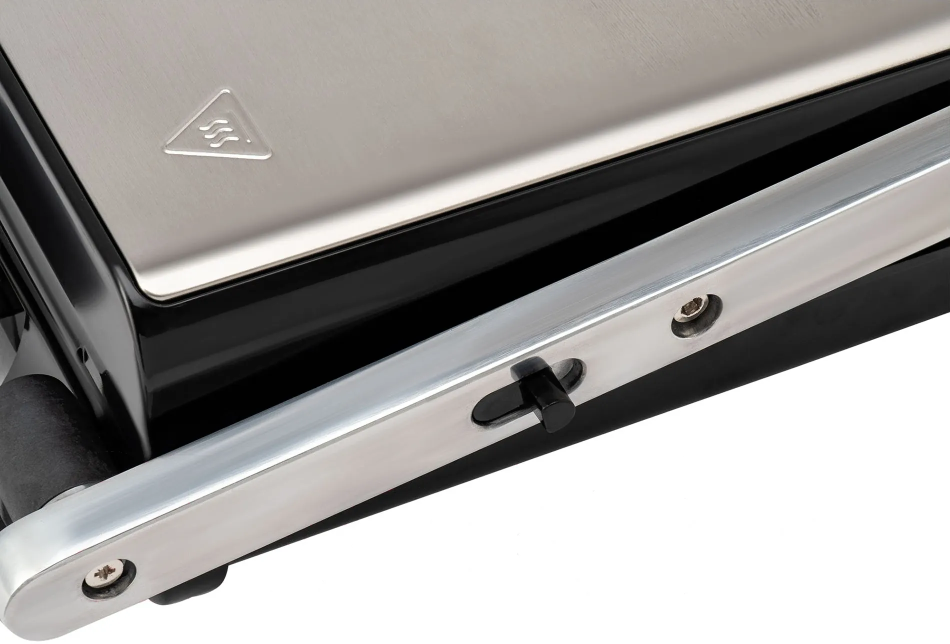 Hyundai HYG-1043 – это эргономичный гриль с интуитивно понятым управлением. С данной моделью готовка здоровой пищи превращается в простое и приятное занятие. Благодаря мощности 1800 Вт прибор быстро греется до рабочей температуры и прожаривает каждый продукт до оптимального состояния. Его ребристые панели после готовки оставляют на пище эстетичный рисунок из аппетитных полос, как после решётки и открытого огня. Стейки получаются в Hyundai HYG-1043 сочными и с нужной степенью готовности: от rare до well done для всех искушенных любителей мяса. Также в комплекте с устройством поставляется лоток для стекающего жира, который устанавливается под его заднюю часть. Две половины электрогриля раскрываются на 180 градусов в режим «барбекю», чтобы можно было эффективно использовать обе панели. Верхняя выполнена с регулировкой угла наклона, для этого на ней предусмотрен удобный упор. Для управления приготовлением пищи в Hyundai HYG-1043 присутствует всего один регулятор – колесо изменения температуры. Справа от него расположены два световых индикатора, верхний показывает, включен ли прибор, а нижний – нагрелся ли он до выставленного жара. Ножки электрогриля не скользят, потому что прорезинены, а его ручка не нагревается во время термической обработки, потому что выполнена из термоизоляционного материала.