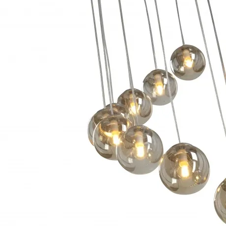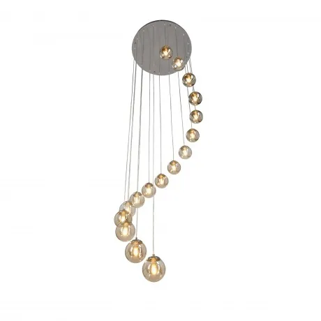 каскадная люстра vitaluce v2893-9/16s с 16 лампами накаливания мощностью до 40 вт каждая, выполнена в стиле модерн, с плафонами из стекла янтарного цвета, высота 326 см, ширина 87 см, подходит для больших залов, общая мощность 640 вт.