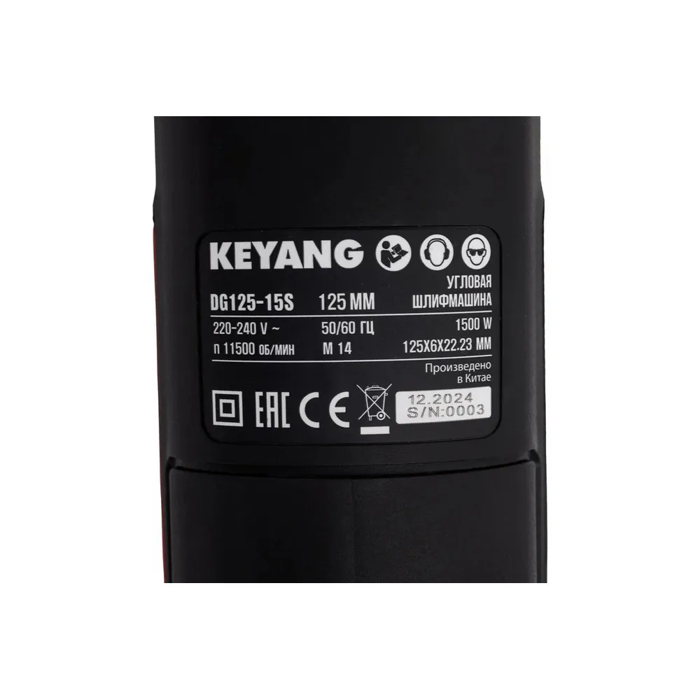 Описание товара Угловая шлифмашина KEYANG DG125-15S