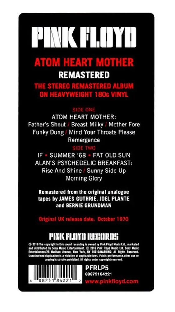 Pink Floyd - Atom Heart Mother (0888751842212) виниловая пластинка - характеристики, описание товара, фото и цены представлены на карточке товара. Этот товар вы можете купить по цене 4002 руб., позвонив по телефону 8(800)505-43-75 в Красноярске, или оформив покупку через корзину.