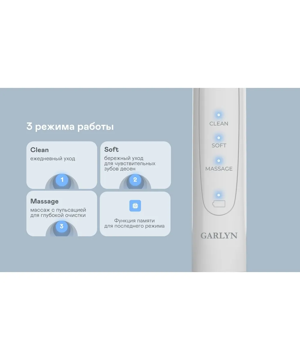 Описание товара Щетка зубная электрическая GARLYN Smile Activecare white