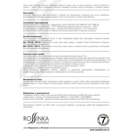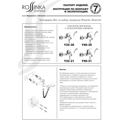 Отзывы о товаре Смеситель для ванны Rossinka Y35-31