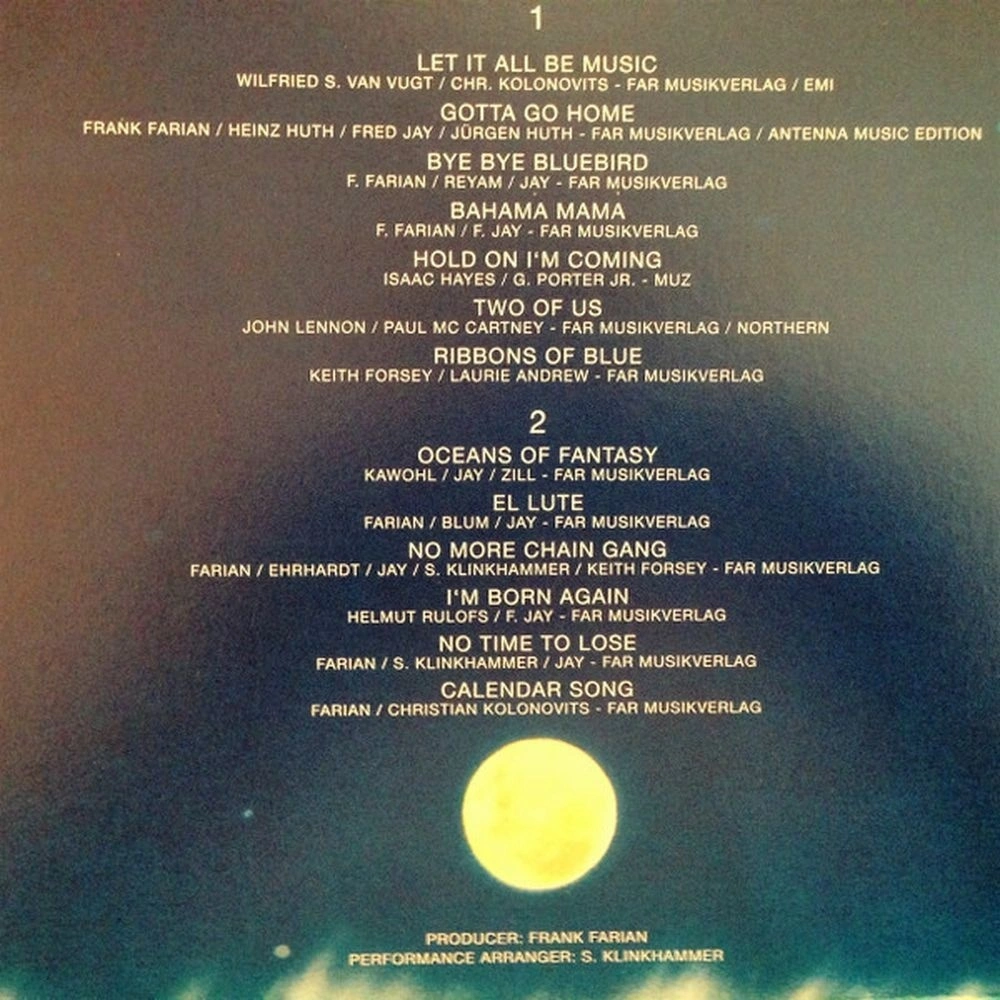 Music, Gotta Go Home, Bye Bye Bluebird, Bahama Mama, Hold On I'm Coming, Two Of Us, Ribbons Of Blue, Oceans Of Fantasy, Lute, No More Chain Gang, I’m Born Again, No Time To Lose, Calendar Song (January, February, March...)