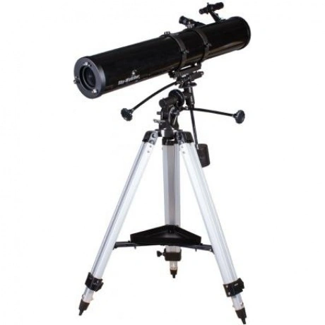 Телескоп Sky-Watcher BK 1149EQ2 – это высококачественный рефлектор Ньютона для первого знакомства с дальним космосом. С помощью этого телескопа можно увидеть десятки галактик, туманностей, звездных скоплений и многое другое. Оптическая труба устанавливается на жесткую экваториальную монтировку EQ2.Зеркальный телескоп Sky-Watcher BK 1149EQ2 формирует яркое и чистое изображение без хроматических аберраций. Данная модель ориентирована на изучение объектов дальнего космоса. Наиболее качественную картинку рефлектор дает вдали от городской засветки. Данная модель комплектуется двумя окулярами: 25 мм и 10 мм – для обзорных наблюдений и для более детального изучения небесных тел.Жесткая экваториальная монтировка EQ2 оснащена механизмами тонких движений по осям склонения и прямого восхождения. Монтировка позволяет компенсировать суточное движение небесных тел. При этом оптическая труба перемещается очень плавно, без рывков. Телескоп Sky-Watcher BK 1149EQ2 можно использовать для астросъемки. Для максимально ровного ведения рекомендуется установить на часовую ось моторный привод (приобретается отдельно). Алюминиевая тренога снабжена лотком для аксессуаров. Высоту ножек можно регулировать.