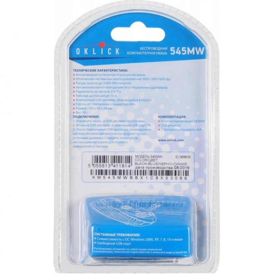 Мышь Oklick 545MW Black-Blue USB – стоимость товара 505 руб. от магазина КотоФото. Уточнить детали по товару можно по 8(495)137-52-98 в Москве. Вы можете заказать товар с доставкой, либо оформить самовывоз.