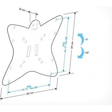 Угол наклона телевизора меняется движением одной руки. В набор входят все необходимые крепежи и инструкция по установке.
