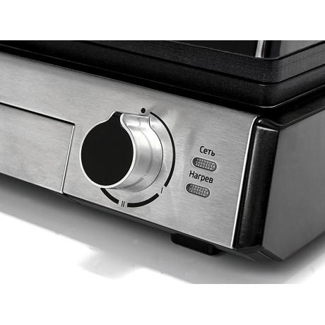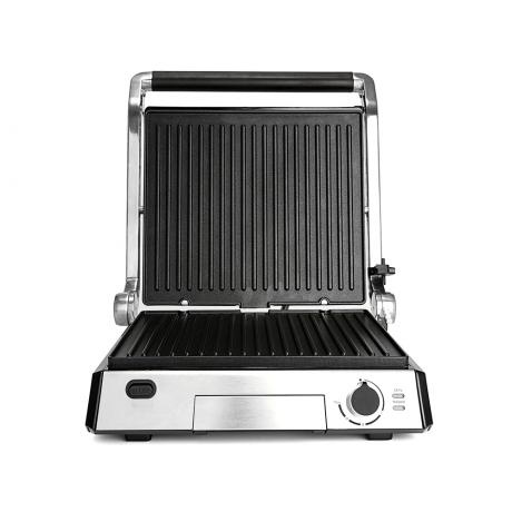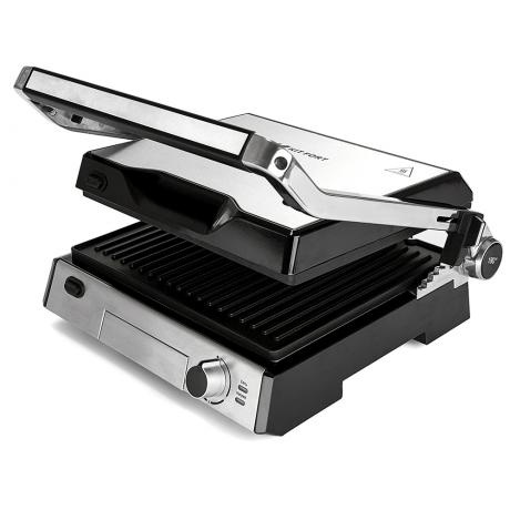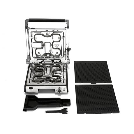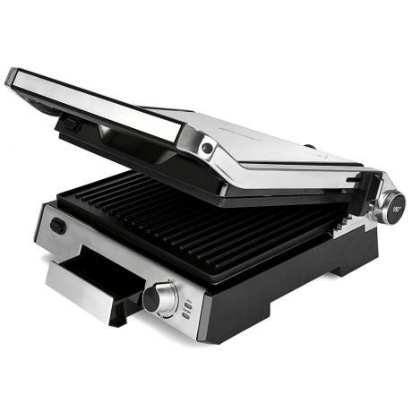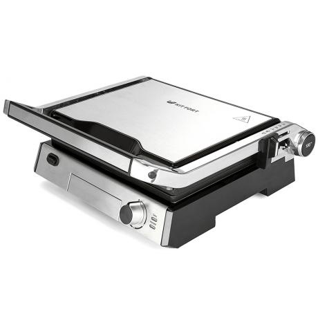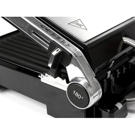 Хорошая мощность, при которой мясо именно жарится Съемные панели - удобно мыть Возможность регулировки высоты верхней панели Возможность разложить гриль на 180 градусов Наличие удобной лопатки для снятия готовых продуктов с гриля Дополнительные ножки для регулировки наклона