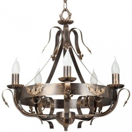 Люстра в стиле ковка. Подходит для жилых и общественных помещений. Рекомендуемая площадь освещения - 15 кв.м. Общая мощность -300 Вт.