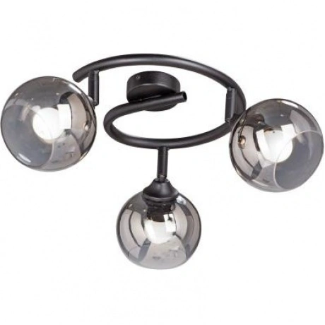 Люстра V4314-1/3PL, 3хЕ27 макс. 60Вт ,количество ламп: 3, максимальная мощность лампы (Вт): 60, цоколь: E27 , лампы в комплекте: нет , площадь освещения, м2:9, цвет основания :черный матовый, тип крепления:планка, Гарантия: 60 месяцев, материал плафонов: стекло , размеры изделия(см):H19 D46
