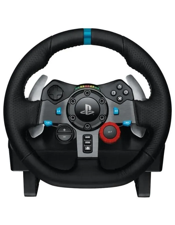 Руль Logitech G29 Driving Force проводной, спортивный, отличается расположением всех необходимых элементов управления в близкой доступности пользователя. Индикаторы светодиодного типа предназначены для рекомендаций по переходу на повышенную или пониженную передачу. Переключение происходит без отрыва от экрана с помощью кнопок «+» и «-», а также благодаря кнопке с 24 режимами переключения игровых ситуаций. Синхронизируется с ПК и системами PlayStation-4 и PlayStation-3. Имеет оплетку из натуральной кожи, 3 педали из нержавеющей стали и осью с 2 металлическими шарикоподшипниками. Реалистичность движения обеспечивает система обратной связи. Проводной руль Logitech G29 Driving Force обладает плавной и четкой поворотоспособностью. Встроенный датчик Холла определяет положение рук на руле. Педали обладают прорезиненными ножками от скольжения. Непоколебимость фиксации конструкции обеспечивают мощные зажимы и шурупы. Угол поворота от упора до упора составляет 900 градусов, т. е. руль поворачивается на 2.5 оборота.