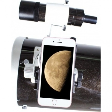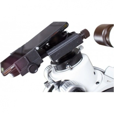 С помощью адаптера Levenhuk A10 вы сможете легко и быстро установить на оптический прибор смартфон, чтобы затем с его помощью делать фотографии или снимать видео. Адаптер совместим с любыми телескопами, микроскопами, зрительными трубами, биноклями и другой оптической техникой. Используя смартфон, вы сможете сфотографировать пояса Юпитера, снять через бинокль редкую птицу, запечатлеть передвижения инфузории-туфельки и сразу же поделиться своими фото и видео с друзьями и подписчиками в соцсетях. Адаптер Levenhuk A10 надежно фиксируется на окуляре оптического прибора, после чего на него устанавливается смартфон. Адаптер совместим со всеми моделями смартфонов. После того как вы включили камеру, нужно просто отцентрировать ее относительно поля зрения окуляра и сфокусироваться на интересующем вас объекте. Адаптер Levenhuk A10 для смартфона универсален – на него можно установить смартфон любой марки с шириной корпуса от 53 мм до 102 мм, по высоте смартфона ограничений нет.