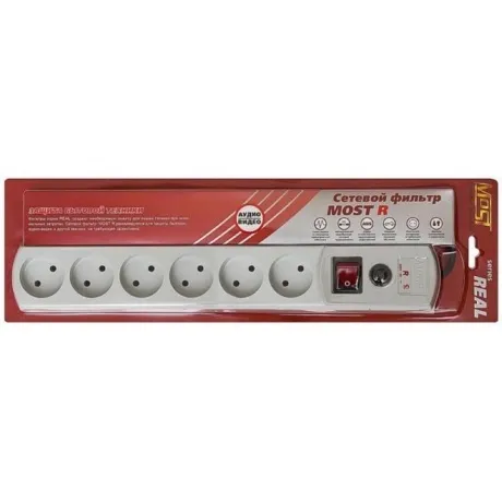 Most R — сетевой фильтр для дома. Предназначен для защиты аудио-видео техники и другой электронной аппаратуры, не требующей заземления, от импульсных перенапряжений и высокочастотных помех. Рекомендуется для использования в сетях с относительно стабильным напряжением. Мost R имеет шесть розеток Российского стандарта. Выбирая эту модель, Вы получаете качественную продукцию при наименьших затратах.