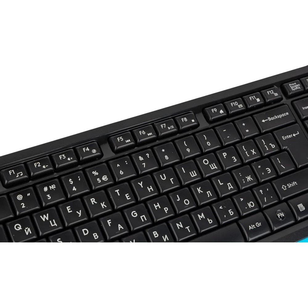 Эргономичный дизайн клавиатуры выполнен в классическом черном цвете с элегантными голубыми акцентами, что придает устройству современный и привлекательный вид. Для удобства пользователей предусмотрены мультимедийные клавиши, облегчающие доступ к основным функциям управления медиафайлами и приложениям.