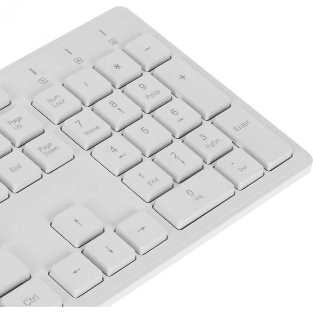 Эта полноразмерная клавиатура выполнена в стильном белом цвете и оснащена 104 клавишами с раскладкой ANSI, что обеспечивает удобство при наборе текста и выполнении различных задач. Мембранный тип клавиатуры гарантирует тихий и мягкий отклик клавиш, что особенно удобно для длительной работы.