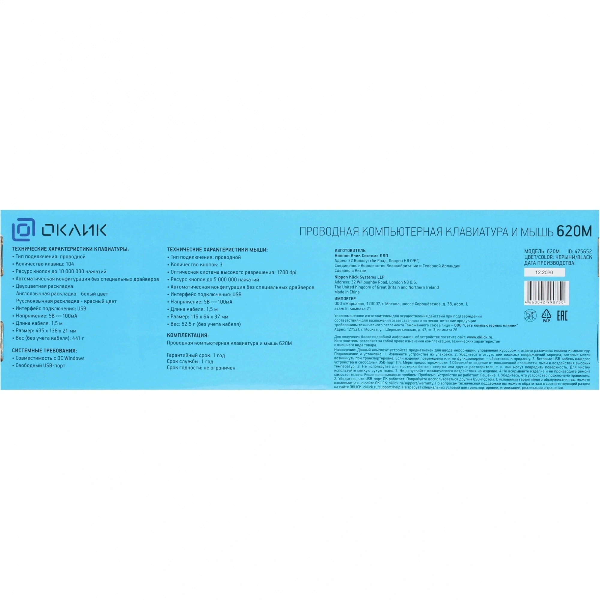 Набор клавиатура+мышь Oklick 620M черный - купить по цене 994 руб. в интернет-магазине КотоФото. На карточке товара Вы можете посмотреть подробное описание, характеристики и фото. Заказать товар можно на сайте, добавив в корзину, или позвонить по телефону 8(495)137-52-98 в Москве. Доступен самовывоз и доставка.