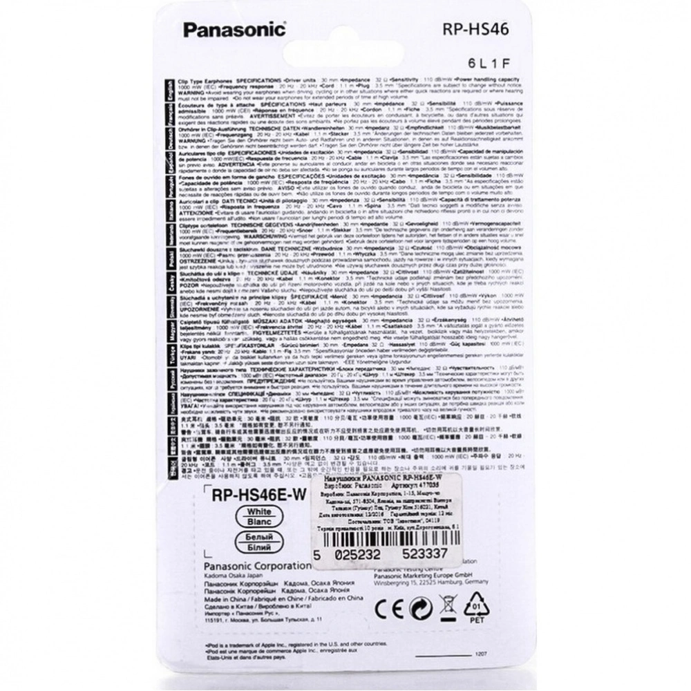 Бренд Panasonic известен своей надёжностью и долговечностью, что делает эти наушники отличным выбором для повседневного использования. Наслаждайтесь любимыми треками с наушниками Panasonic и получайте удовольствие от каждого звукового нюанса.