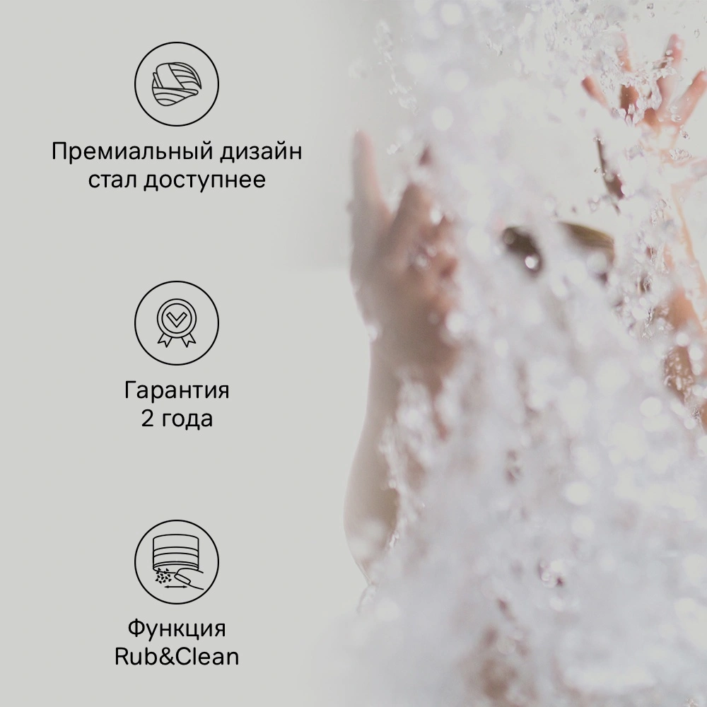 Dynamic Organic — природные формы в сочетании с четкими линиями, доведенными до совершенства человеком. Уникальный рисунок и диаметр форсунок – дизайн равномерное распределение воды при любом напоре и обеспечивает максимум удовольствия от душа. 3 режима ручного душа: Spray, EnerJet, Spray + Massage с инновационным переключателем режимов Turning Switch. Функция Rub & Clean для легкой очистки душевых форсунок.