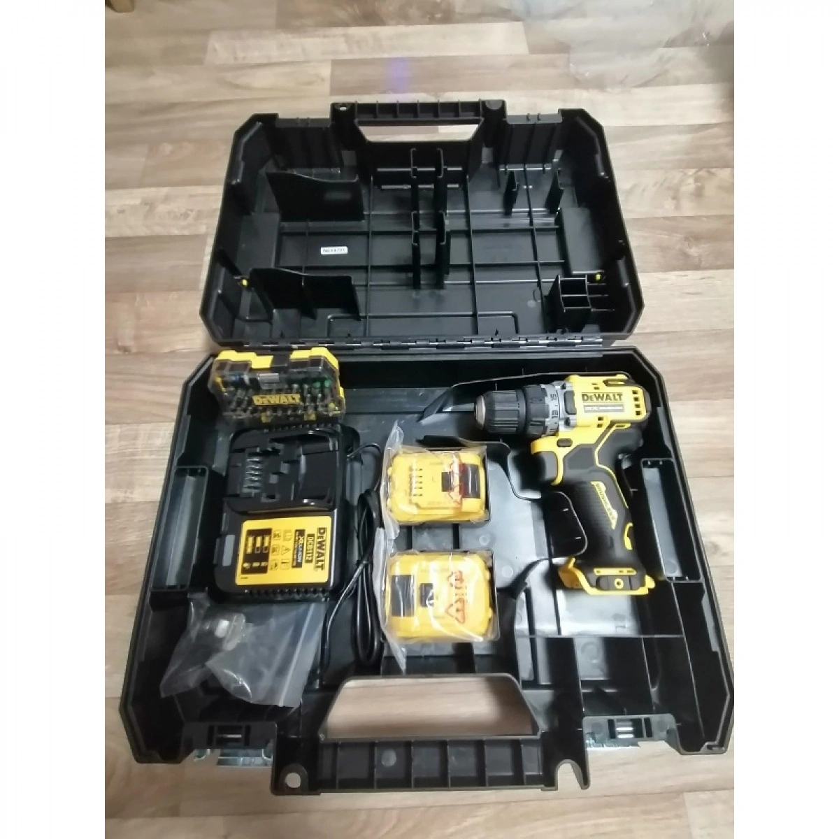 дрель-шуруповерт, аккумулятор 2 шт, зарядное устройство, кейс, упаковка