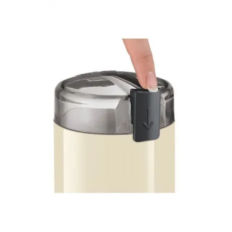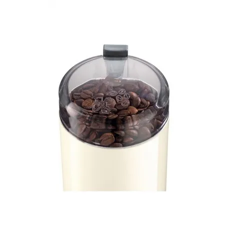 Кофемолка электрическая Bosch TSM6A017C в бежевом корпусе выполнена в форме колбы: такой дизайн устройства будет удобен в процессе пользования. Для измельчения зерен модель использует ротационный нож, лезвия которого изготовлены из нержавеющей стали. Это является залогом качественного и точного помола. Кофемолка является компактным приспособлением, ее размеры составляют 9x9x17 см, что позволяет установить прибор в любом уголке вашей кухни. Помол зерен при помощи кофемолки Bosch TSM6A017C возможен только при закрытой крышке. Когда крышка снята, срабатывает блокировка включения. Кнопка на корпусе устройства способствует безопасному выключению. За один раз прибор справляется с измельчением 75 г зерен кофе, что позволит из этого количества приготовить довольно много напитка. Мощность кофемолки достигает 180 Вт.