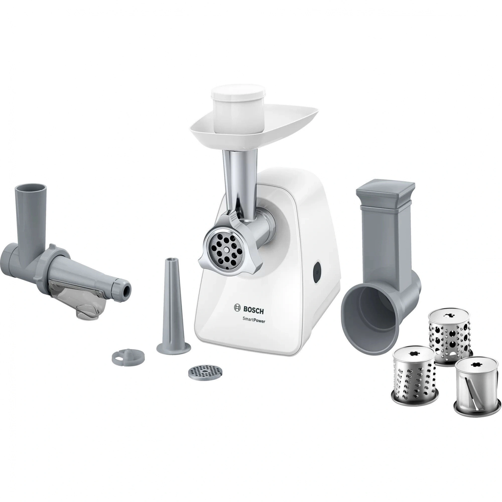 Мясорубка Bosch MFW 2517W - компактный размер и большие возможности. Благодаря компактным размерам мясорубку легко и быстро можно подготовить к работе, а также найти место для её хранения. Возможность приготовить разообразные блюда с помощью насадки для шинковки, нарезки и измельчения продуктов. Пресс для отжима сока из ягод, яблок и томатов: быстрая переработка плодов и ягод, чистый сок без косточек и жмыха. Насадка для колбас позволяет просто приготовить свежие, домашние колбаски. Отличное качество фарша и быстрый результат благодаря высокой мощности мотора до 1500 Вт (при блокировке мотора).