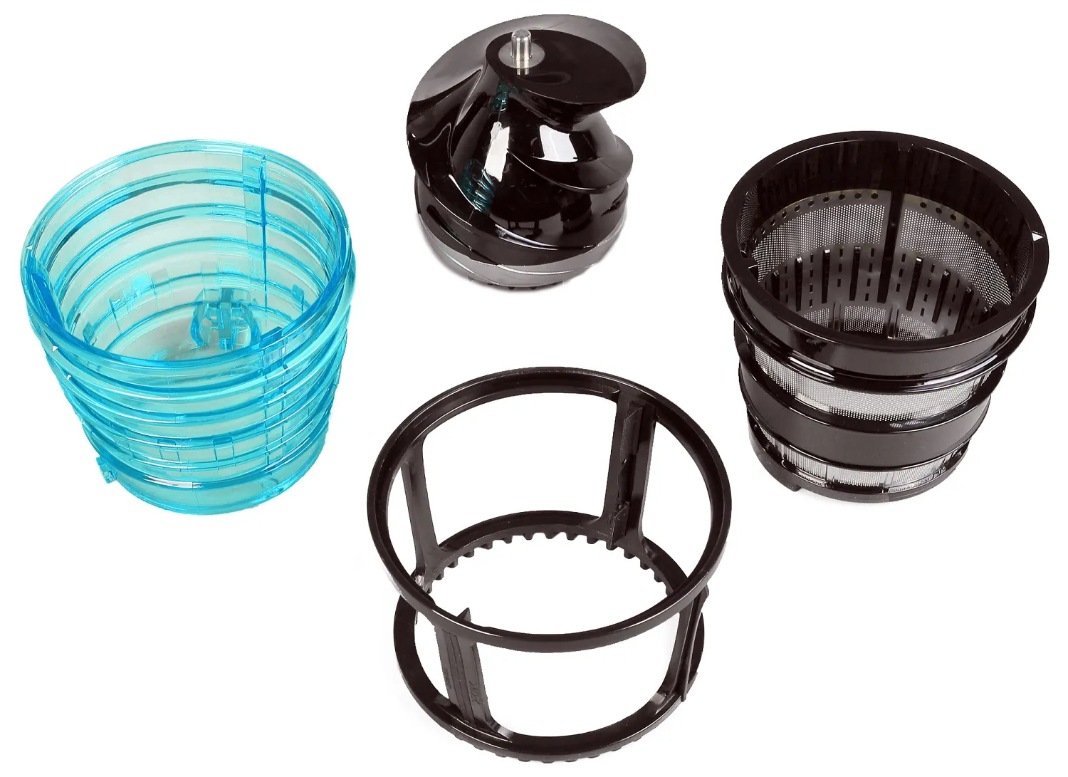 Соковыжималка в сборе - 1шт, толкатель - 1шт, контейнер для сока - 1шт, контейнер для мякоти - 1шт, насадка для обработки замороженных продуктов - 1шт, чистящая щёточка - 1шт, инструкция по эксплуатации - 1шт, гарантийный талон - 1шт
