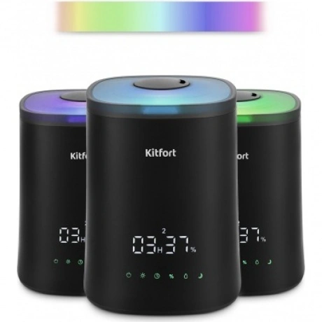 Ультразвуковой увлажнитель - ароматизатор воздуха Kitfort KT-2808 увлажняет воздух в помещении (площадью не более 2530 м), создавая хороший микроклимат для проживания людей. В комплекте к увлажнителю идёт пульт дистанционного управления. Залейте чистую холодную воду в резервуар, добавьте прямо в основание увлажнителя 10-20 капель любимого эфирного масла на водной основе. И наслаждайтесь любимым ароматом! В увлажнителе-ароматизаторе можно установить целевую влажность воздуха 30-75 % с шагом 5, время таймера - 2, 4 или 6 часов и интенсивность тумана 1, 2 или 3. А также включить или выключить подсветку в корпусе. Корпус увлажнителя - ароматизатора подсвечивается изнутри разными цветами, его можно использовать в ночное время в качестве ночника. При помощи спокойных приятных цветов создаст в доме уютную атмосферу.