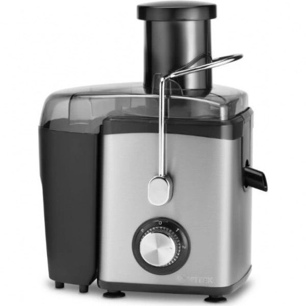 C мощной (100Вт) стильной соковыжималкой приготовить свежие натуральные соки очень легко – Вам нужно лишь тщательно вымыть фрукты или овощи и удалить плодоножки. В модели соковыжималки VT-3653 установлен эффективный, долговечный, с низким уровнем шума (67,5 дБ) электромотор, а горловина имеет диаметр 70 мм - подходит для целого яблока, или иного фрукта! Модель оснащена прочными стальными фильтрами и лезвиями из нержавеющей стали, которые легко моются и не изнашивается со временем, коническая форма фильтров позволяет наилучшим образом организовать отброс мякоти в контейнер объемом 1,0 л. Корпус модели также выполнен из нержавеющей стали – прочного и долговечного материала.