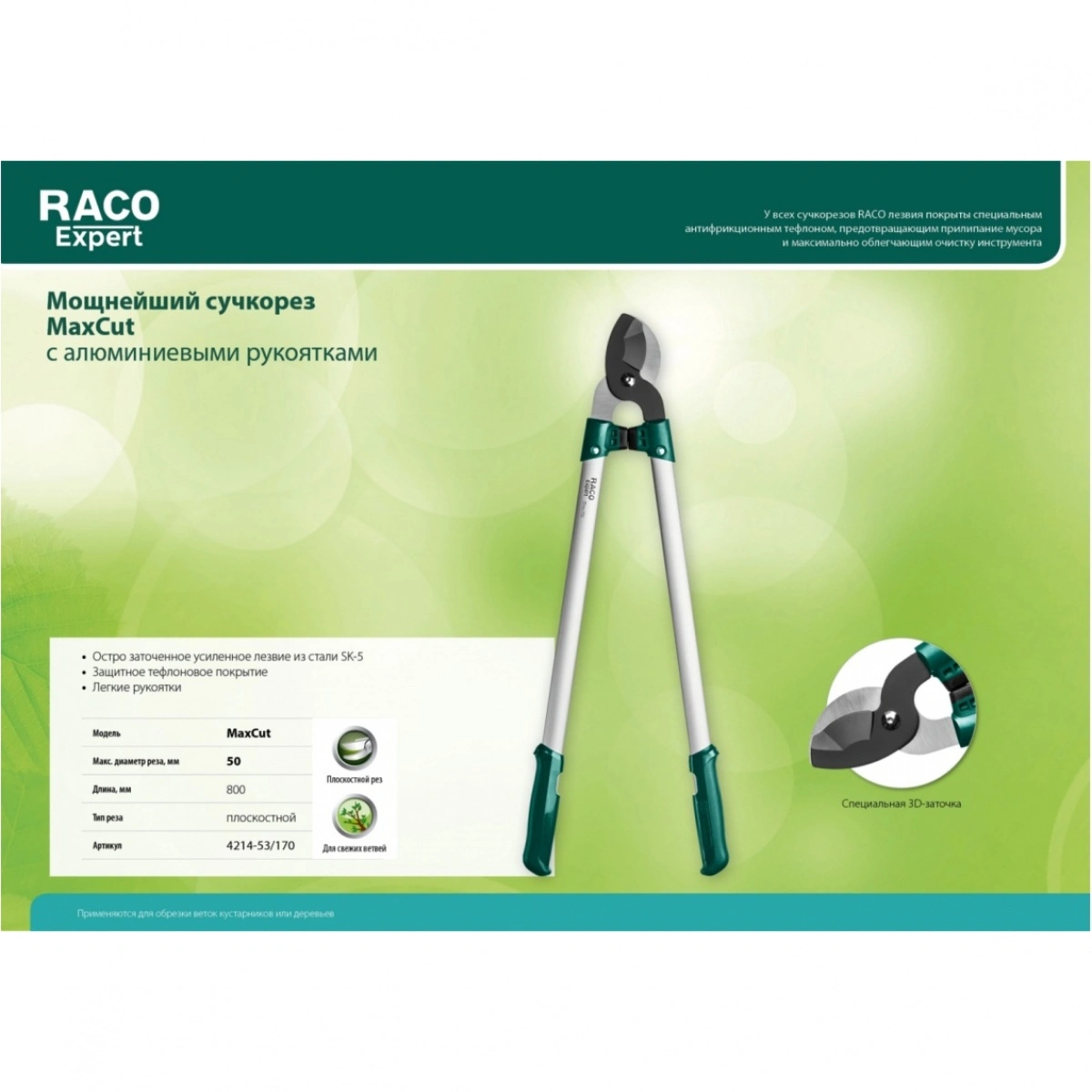 Сучкорезы RACO MaxCut со специальной 3D-заточкой обеспечивают максимально мощный рез. Изготовлены из современных и качественных материалов. Благодаря специальному антифрикционному тефлоновому покрытию лезвий и алюминиевым рукояткам инструменты удобны в работе, обладают длительным сроком службы.