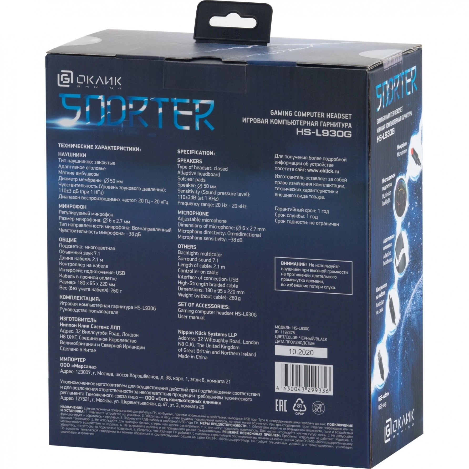 Наушники Oklick HS-L930G Snorter черный/синий в Москве