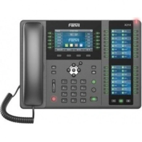Fanvil X210 - это корпоративный IP-телефон высокого класса для пользователей, которым необходим доступ к гибким и расширенным функциям для обработки средних и больших объемов вызовов в повседневной работе. Благодаря 10 клавишам DSS на 4,3-дюймовом главном цветном дисплее, до 96 клавишам DSS (32 физических) на боковых цветных дисплеях 2 ? 3,5 дюйма, X210 имеет до 106 клавиш DSS с BLF. На аппарате функция быстрого набора, функции группового вещания и т. д. Телефон поставляется с HD-аудио, встроенным Bluetooth, возможностью подключения к Wi-Fi, поддержкой EHS, двойной гигабитной сетью, PoE, IP-камерой / SIP-домофоном, обеспечивая высокую производительность с этими расширенными функциями.