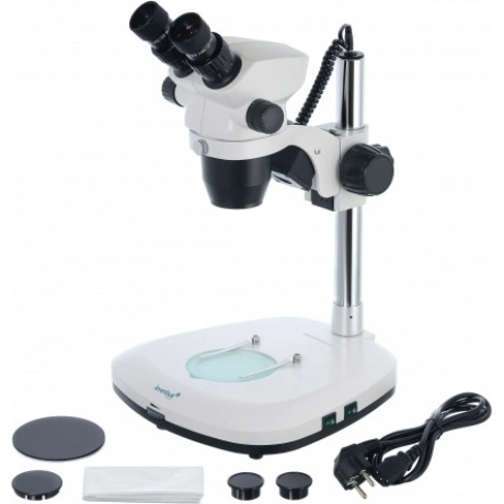 Бинокулярный стереоскопический микроскоп Levenhuk ZOOM 1B можно использовать для изучения крупных образцов любой степени прозрачности. Он позволяет использовать и проходящий, и отраженный свет в наблюдениях по методу светлого поля. Микроскоп хорошо подойдет для профессиональной работы часового мастера, ювелира, геолога, зоолога, ботаника, филателиста, нумизмата. Благодаря простоте управления микроскоп можно использовать и для любительских исследований. Бинокулярная насадка позволяет вести наблюдения сразу обоими глазами – это снижает нагрузку на зрение и делает длительную работу с образцами более удобной. Визуальная часть имеет наклон, всю насадку можно поворачивать на 360°. В комплектацию включены широкопольные окуляры с 10-кратным увеличением, которые обеспечивают хороший угол обзора. Объектив панкратический, а значит, кратность микроскопа можно изменять плавно, а не ступенчато. Общее увеличение оптики составляет от 7 до 45 крат. Есть грубая настройка резкости.