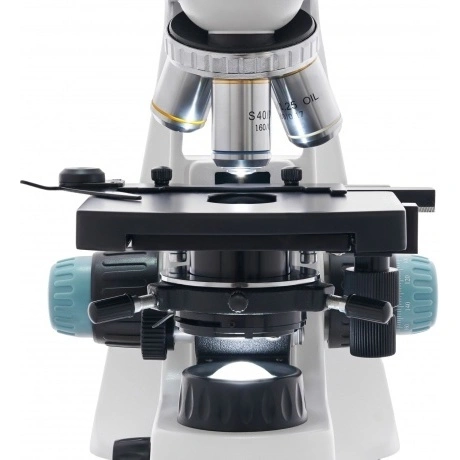 Levenhuk 400B – бинокулярный лабораторный микроскоп для работы с биологическими образцами. Этот оптический прибор создан специально для микробиологов, биохимиков, ветеринаров и медиков. Микроскоп позволяет проводить профессиональные исследования на увеличении от 40 до 1000 крат. Можно использовать метод светлого поля и масляную иммерсию. Поворотную насадку можно вращать на 360°, бинокулярный визуальный узел имеет удобный для длительной работы наклон в 30°. Окуляры широкопольные и дают увеличение в 10 крат, револьверное устройство вмещает четыре объектива – в него уже установлены ахроматические объективы с увеличением 4х, 10х, 40х и 100х. 100-кратный объектив можно использовать для масляной иммерсии. Обратите внимание, что объективы 40х и 100х имеют специальные пружинящие оправы, защищающие переднюю линзу от случайных повреждений.