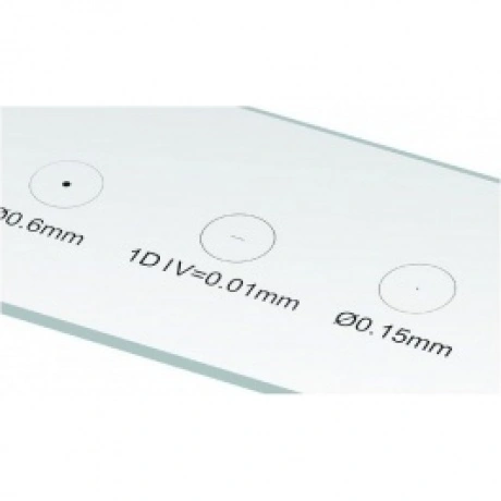 Технические характеристики: Длина шкалы, мм - 1, Число делений шкалы - 100, Цена деления шкалы, мм - 0,01, Диаметр окружностей, мм - 1,5/0,6/0,15/0,07