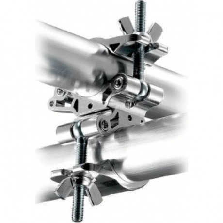 Зажим двойной для соединения двух перекладин под 90 градусов, максимальная нагрузка 300 кг, для установки на объекты диаметром 48-52 мм.