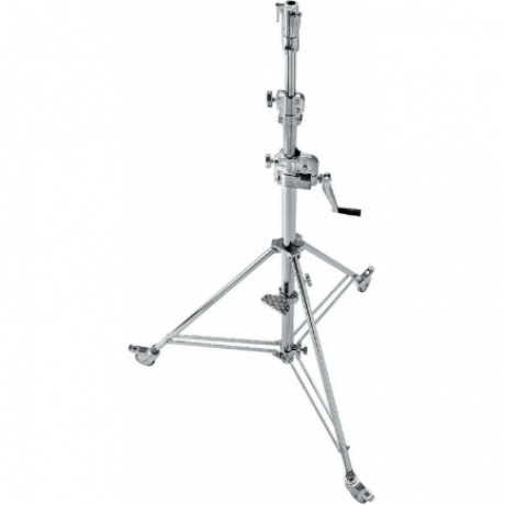 Сверхпрочная стойка из хромированной стали состоит из 3 секций с 2 фиксаторами. Оснащена редукторной ручкой, одной выравнивающей ногой и колесами с тормозами. Максимальная нагрузка 30 кг и максимальная высота 2,96 м. Также снабжена ступенькой на колонне для удобства оператора.