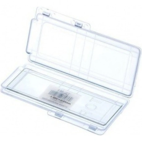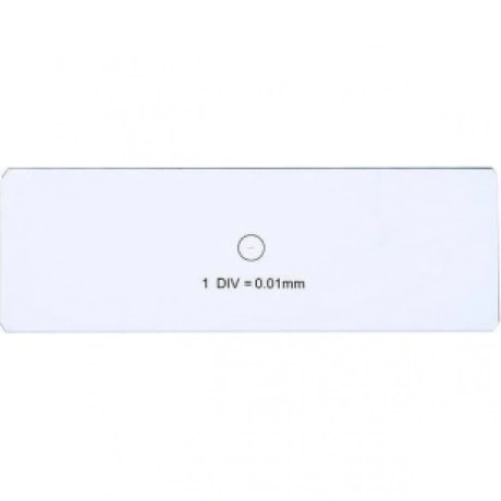 калибровочный слайд представляет собой прозрачное стекло (по размеру предметного стекла микроскопа) с нанесенной на него микрометрической шкалой с разрешением 0,01мм